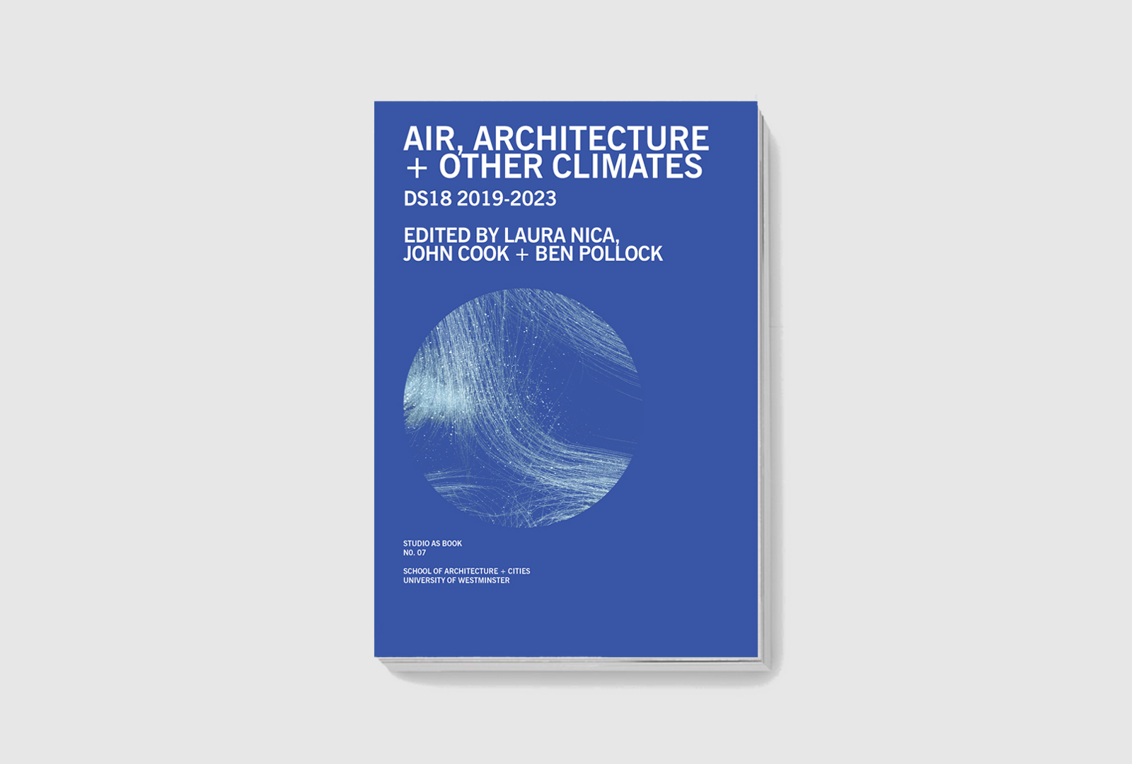 Air, Architecture + Other Climates is the second DS18 volume (2019–2023), edited by Laura Nica, John Cook and Ben Pollock. It establishes air as the studio’s primary conceptual and material framework—an atmospheric medium through which architecture is rethought in relation to climatic, ecological and sensory forces. Bringing together essays, contributions and selected student projects, the book documents DS18’s evolving pedagogy, where learning to read, map and simulate air, weather and energy underpins new spatial and representational approaches. From Norway’s shifting climatic zones to the UK’s environmental instabilities and the delicate microclimate of Dungeness, the studio investigates how atmospheric thinking expands architectural imagination. Structured as an ongoing dialogue, the volume reflects a commitment to experimentation, critical inquiry and climate‑literate design. By foregrounding air’s entanglement with wider atmospheric processes, it repositions architectural practice within the urgent conditions of climate instability, calling for more responsive and responsible forms of design.