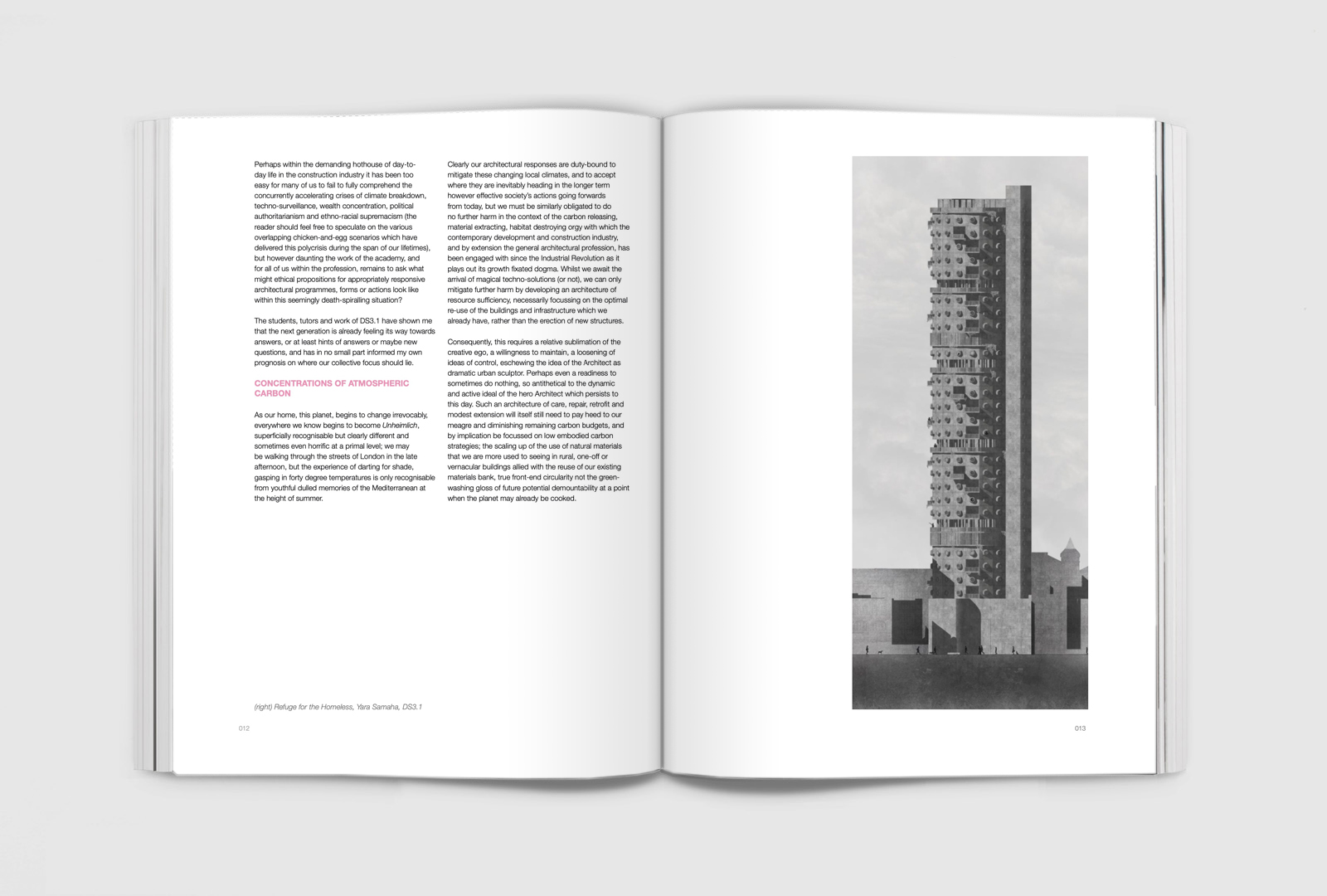 Reducing the creative output of a multi-year design studio to a single volume, using a pre-designed book template is no easy undertaking, and it is necessarily selective. At the same time, it provides a consistent, sure platform for the wide range of approaches to the discipline of teaching architectural design which characterise the department.