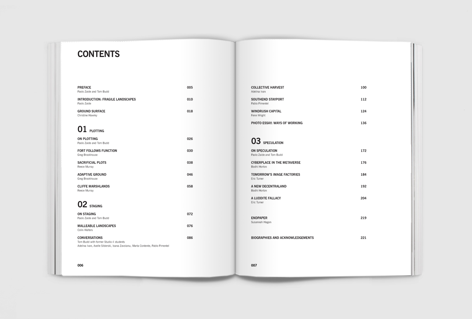 Each Studio as Book has been peer-reviewed on the basis of a proposal submitted by the studio’s tutors to an editorial committee. In addition to studio briefs and student work, each book includes content that draws out the studio’s research and pedagogical agenda. The format that this takes varies from book to book – reflective essays by tutors or past students, interviews, theoretical essays from parallel fields, and so forth.